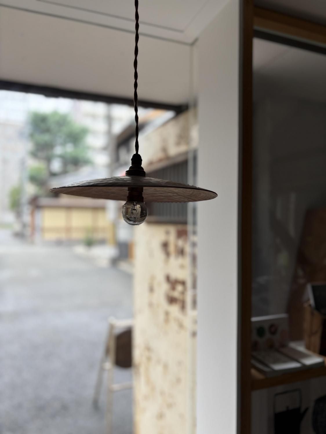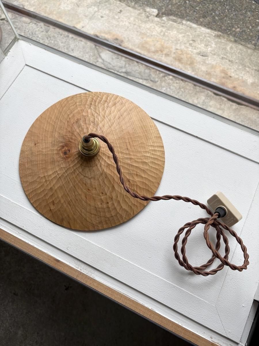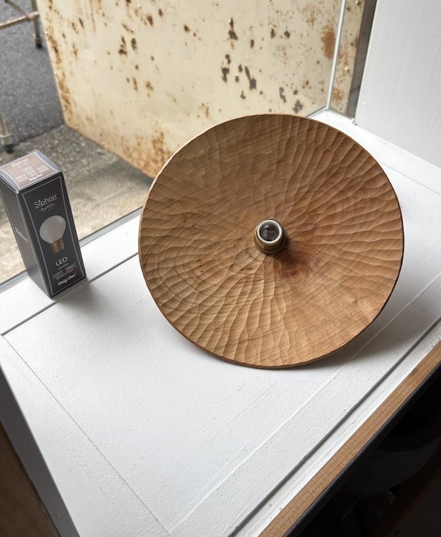 当店の喫茶室や店内にて長らく愛用しております渡邊さんの木のランプシェード。