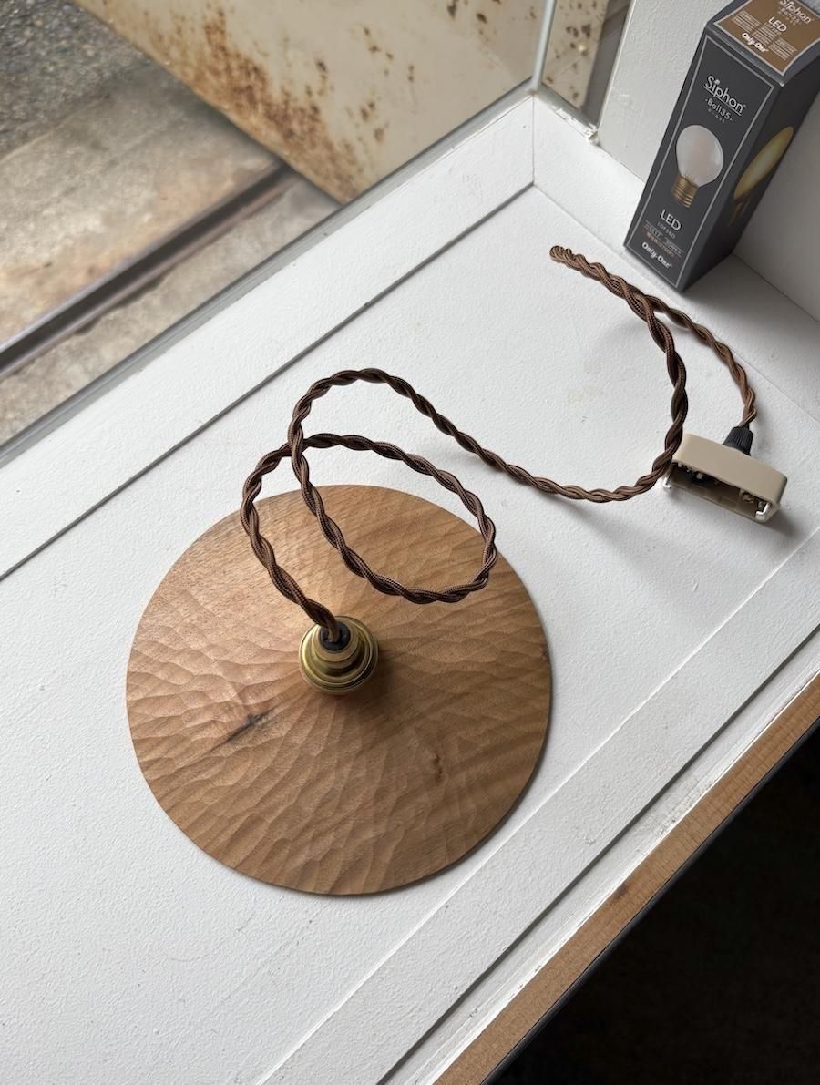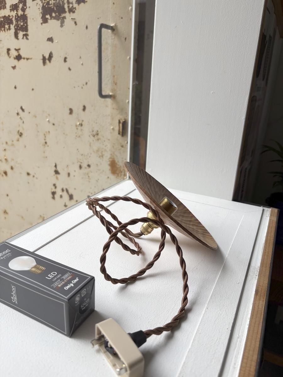 当店の喫茶室や店内にて長らく愛用しております渡邊さんの木のランプシェード。